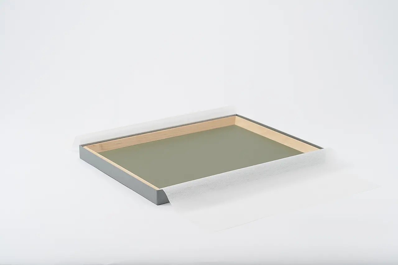 トレーの底板はナチュラルカラーの3色のリノリウムから選べます。