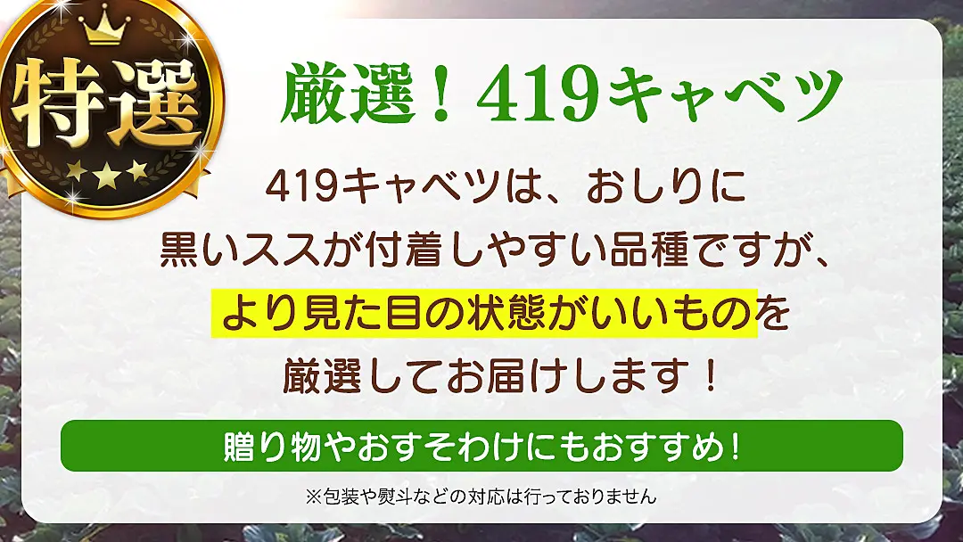 こちらの419キャベツは通常よりも時間をかけ、一玉ずつ手作業で念入りに検品を行います。