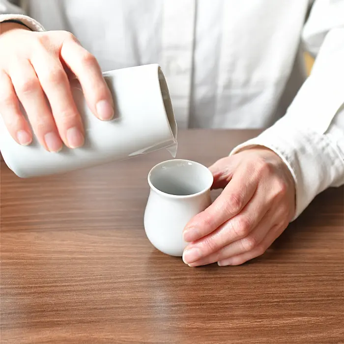 注ぎやすい片口と、手にしっくり馴染むぐい呑みは、使うたびに心地よさを感じさせてくれます。
