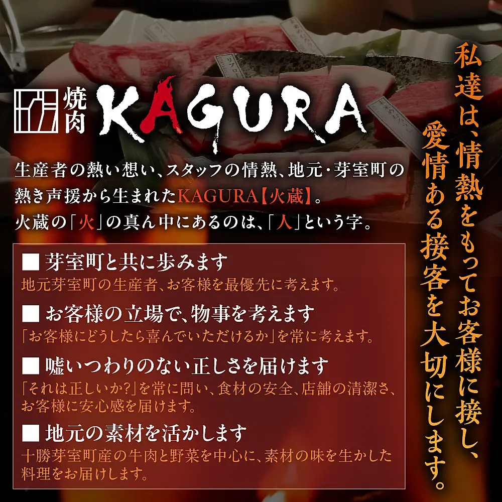 直営牧場の地元ブラント牛「未来めむろうし」を1頭買いし、部位ごとに熟成を見極め、一番おいしいタイミングでご提供。