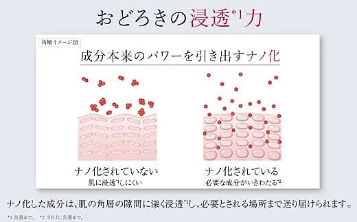 *1 浸透型とは角層まで。 *2 美肌を保つうるおい、ハリなどの成分のこと。 *3 角層まで。 *4 独自製法のこと。 *5 うるおい成分 *6 ビタミンCテトライソパルミテート(うるおい成分)