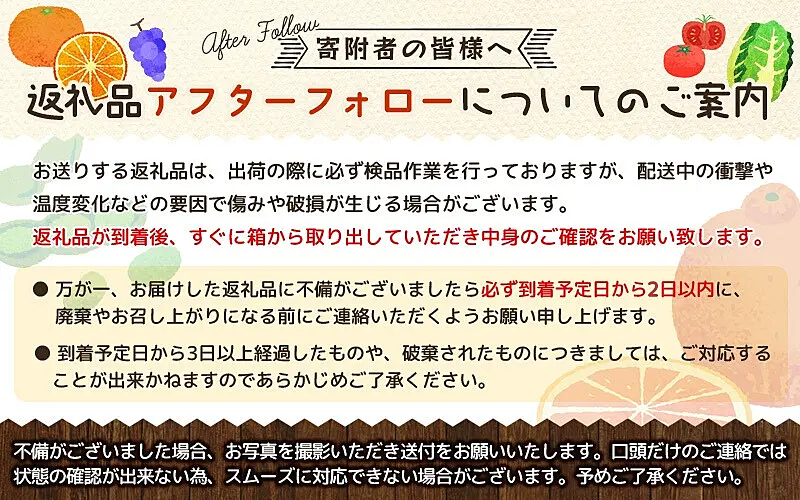 ※果皮表面の白粉が付着していることがありますが、石灰と硫黄の混合剤です。みかんの味と日保ちを良くするためのものですので品質には問題ありません。