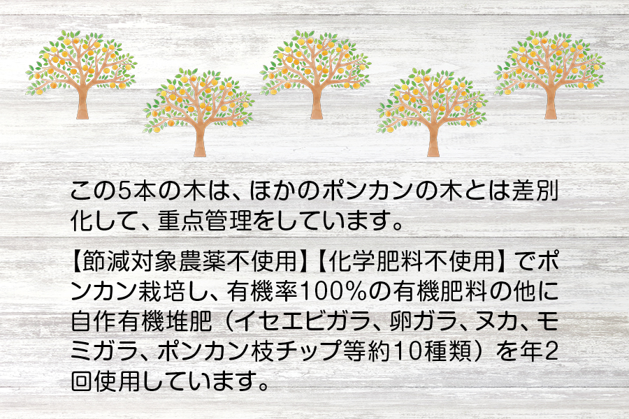【節減対象農薬不使用】【化学肥料不使用】でポンカン栽培し、有機率100%の有機肥料の他に