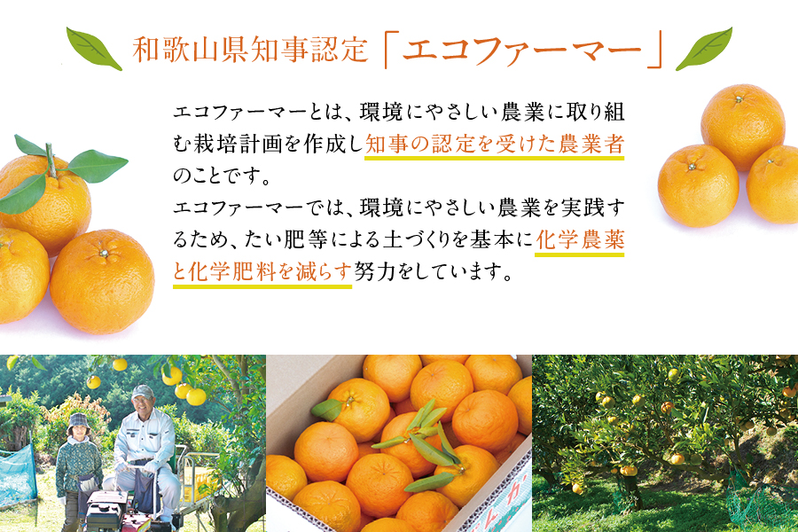 NPO和歌山有機認証協会より、和歌山県特別栽培農産物の認証を受け、和歌山県よりエコファーマー、