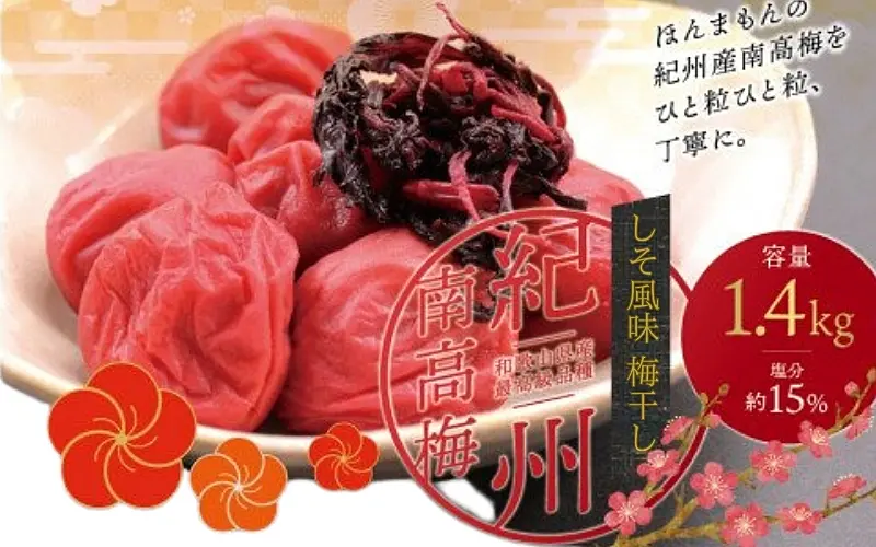 最高級紀州南高梅・大粒しそ風味梅干し 1.4kg【ご家庭用】