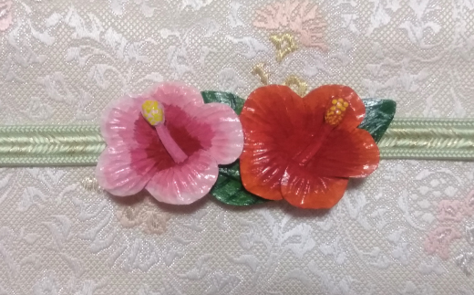 8月の帯留め(ハイビスカス)(兼ブローチ)