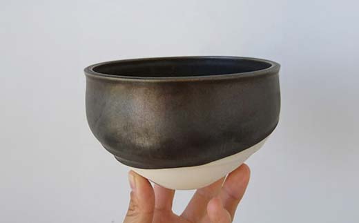 この植木鉢は、植物が映えるしっとりとした黒い釉薬と、白い生地のコントラストが特徴です。