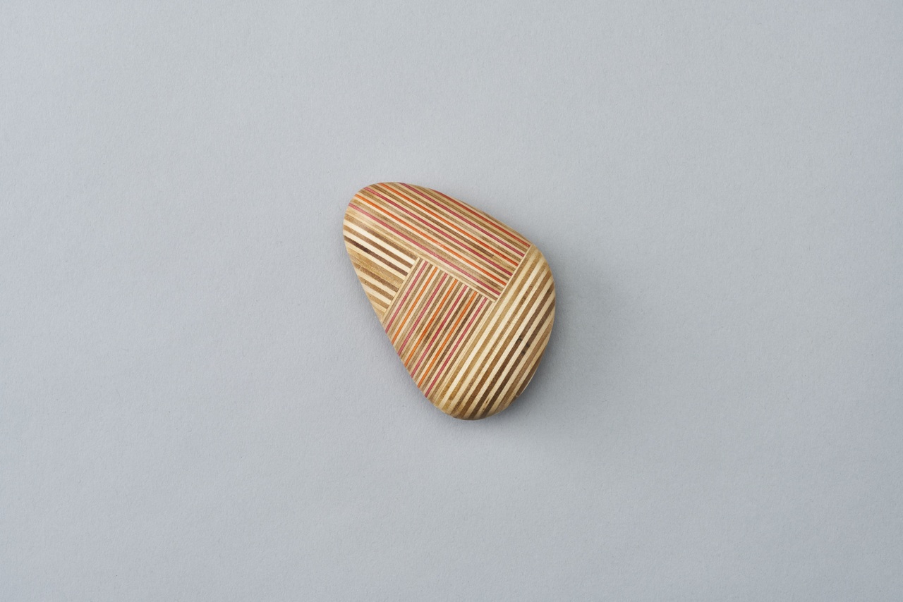 伝統的な家具技術の千切り(ちぎり)をモチーフにしています。千切りとは木材の割れなどを「つなげる」ためのリボン型の部材の事です。幸せな「つながり」が末永く続きますよう願いを込めた意匠にしました。