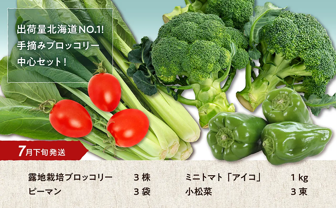 北海道産出荷量トップの東川町が誇る手摘みブロッコリーを中心にした農産物セット。