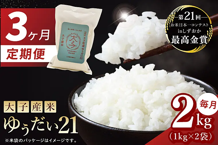 【3ヶ月定期便】大子産米 ゆうだい21(精米)2kg×3回|(AV025)