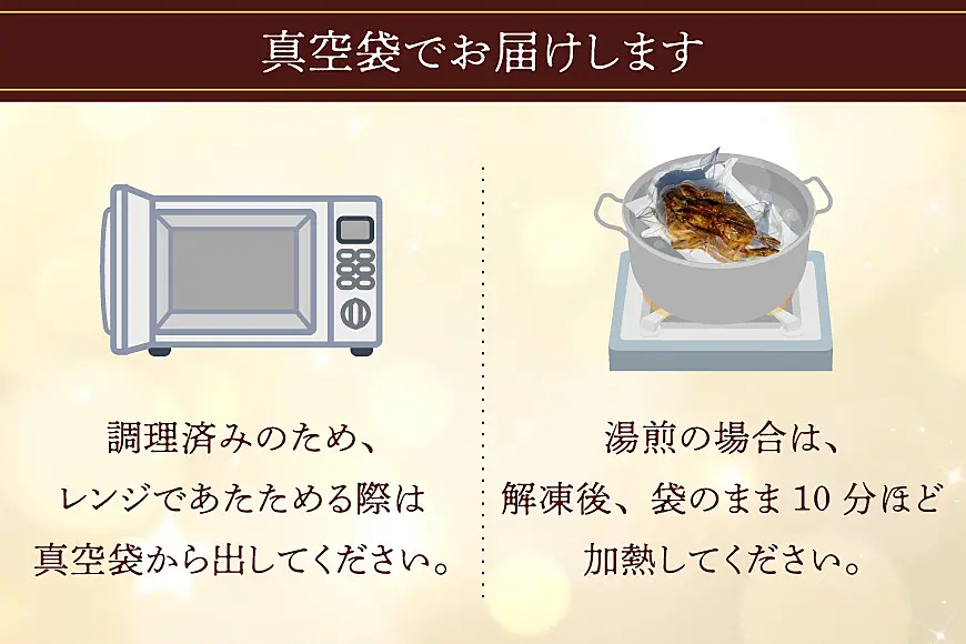 真空パックを自然解凍し、加熱してお召し上がりください。