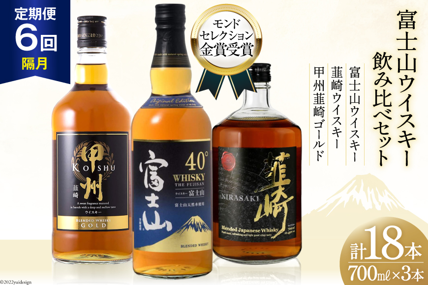 【6回 定期便 隔月】 富士山 ウイスキー 3種×6回 総計18本 各700ml [サン.フーズ 20743293]