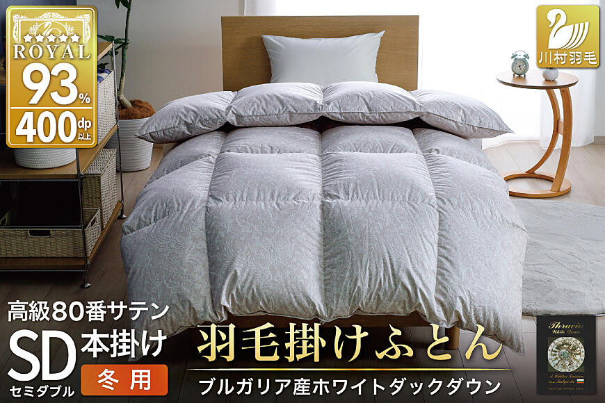 羽毛布団 本掛け ホワイトダックダウン93% セミダブル 1.5kg 綿100% シルバー [20745155]