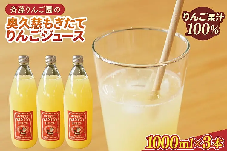 斉藤りんご園の奥久慈りんごジュース(ストレート)1000ml×3本セット(化粧箱入り)(CG005)