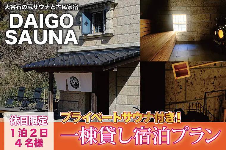 DAIGO SAUNA プライベートサウナ付き一棟貸し宿泊プラン【休日限定:4名様】1泊2日 大子町 民宿(CT004)