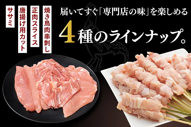 奥久慈しゃも肉詰め合わせ(正肉スライス200g・唐揚げ用カット400g・ササミ200g・焼き鳥肉串刺し10本入り)(AR007)