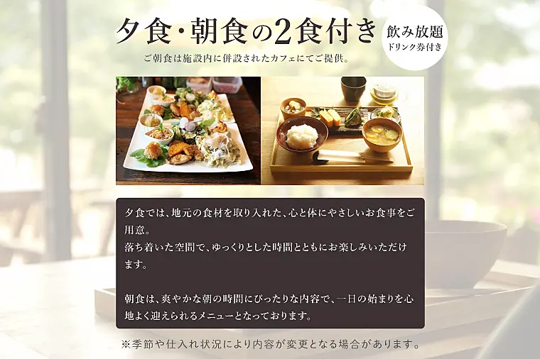 - 宿泊+食事+ドリンク券(飲み放題付きペア:紙)