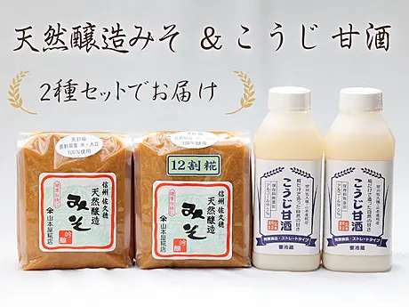 老舗糀屋の糀だけで造った甘酒2本と天然醸造みそ2種セット〔YK-04〕