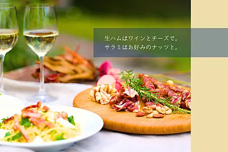 「生サラミ」と「セミドライサラミ」の食べ比べもお楽しみ頂けます。