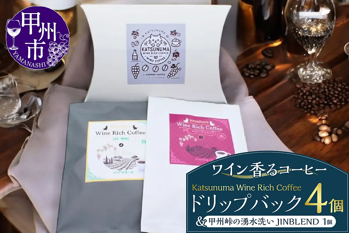 Katsunuma Wine Rich Coffee4個+甲州峠の湧水洗いJINBLEND1個セット(JCF)A08-1550