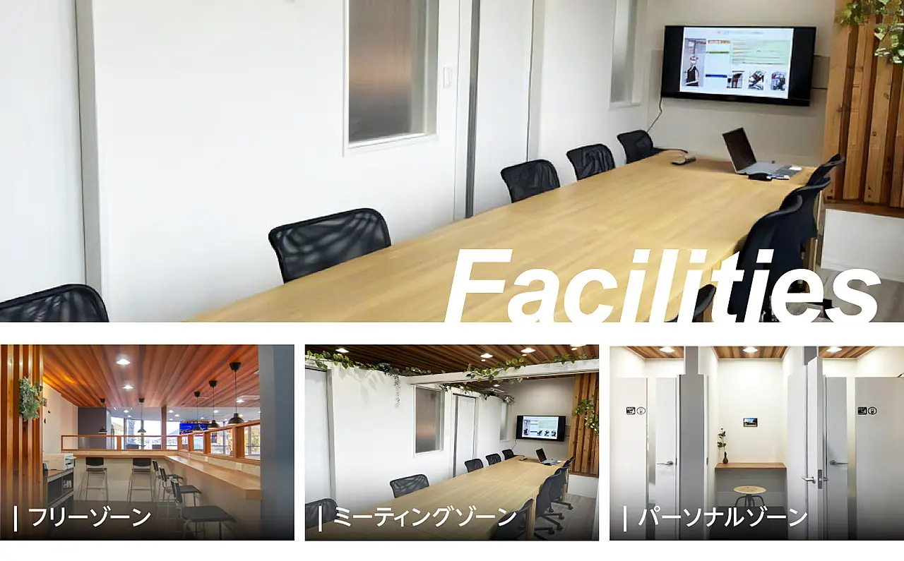 立つ・座る・くつろぐの3タイプのスペースが揃っており、会議室・個室もあります。