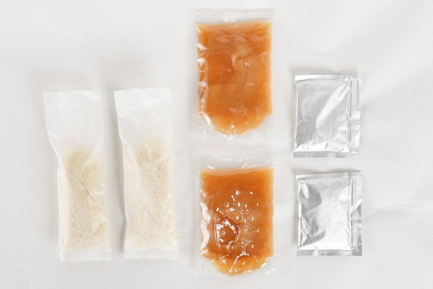 - (ふかひれ姿煮180g、生中華麺110g、海鮮ラーメンスープ72g)×各2