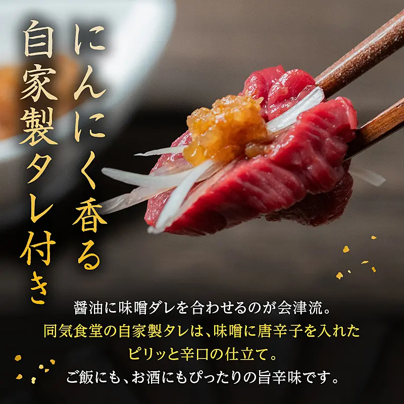 1/1~寄附額改定 大正10年創業【同気食堂】福島県の老舗の味「会津の馬刺し」自家製タレ付 (約150g×2) F4D-0003