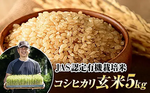 令和7年産米 JAS認定 有機栽培米 コシヒカリ 玄米 5kg F4D-2091