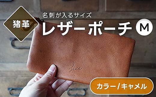 レザーポーチ M 本革 長財布が入る キャメル 福島県 西会津町 F4D-2215