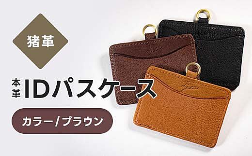 猪革 IDパスケース 本革 レザー レザー ブラウン 福島県 西会津町 F4D-2234
