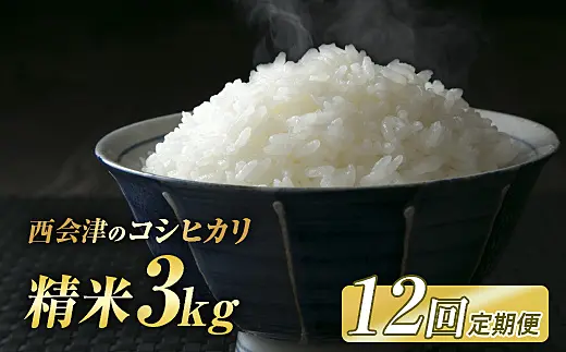 <定期便12ヶ月> 西会津産米コシヒカリ 精米 3kg F4D-1970