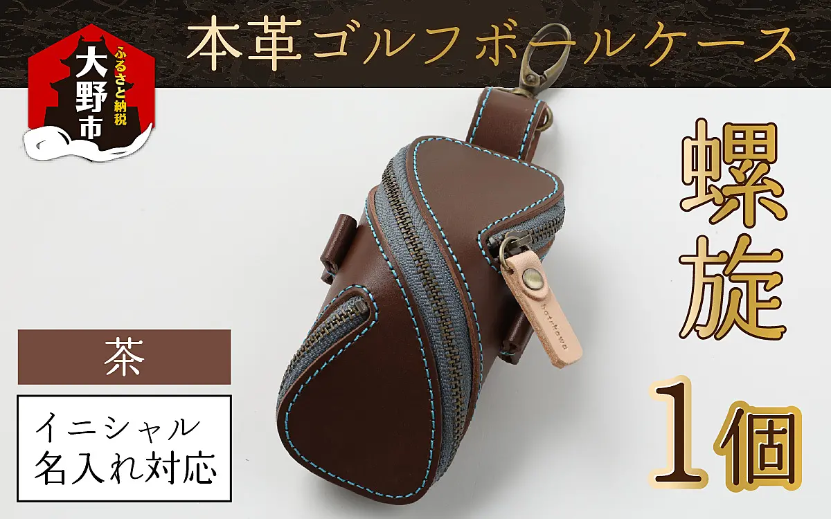 【6色から選べる】本革ゴルフボールケース 螺旋 茶【イニシャル名入れ対応】 [B-024003_02]