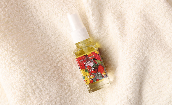 鹿児島県産のツバキ種子からコールドプレス製法で絞った人間の皮脂に近いツバキ種子油が、肌や髪を艶めく美しさに導きます。