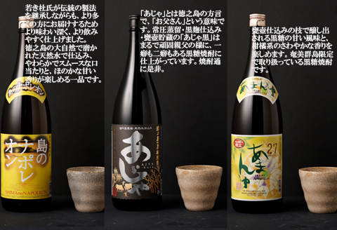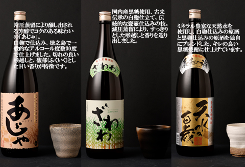 常圧蒸留・黒麹仕込み・甕壺貯蔵の「あじゃ黒」はまるで頑固親父の様に、一癖も二癖もある黒糖焼酎に仕上がっています。焼酎通に是非。