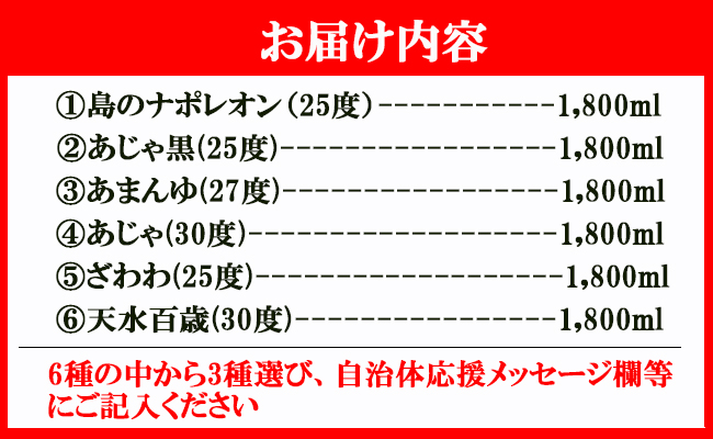 ※お選びいただいた焼酎の番号をご注文の際に自治体応援メッセージ欄等にご記入ください。※
