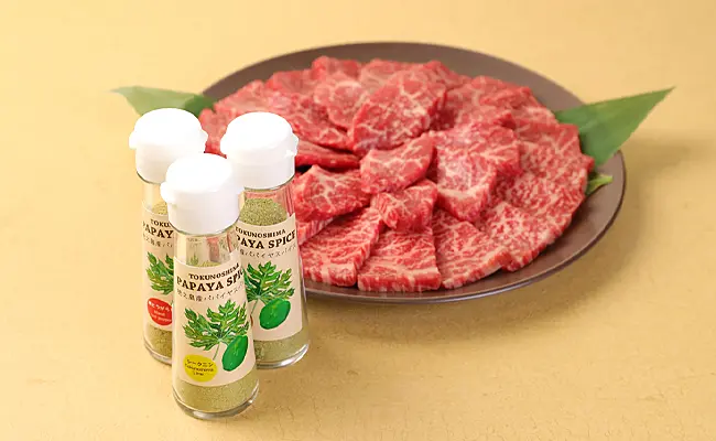- 黒毛和牛 赤身モモ肉 焼肉用&パパイヤスパイス3種セット 牛肉 もも肉 バーベキュー