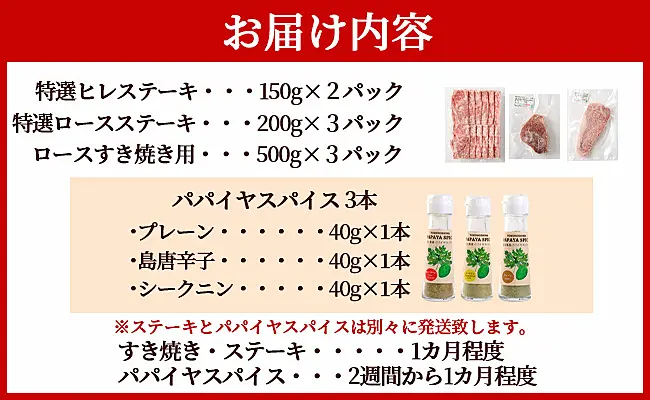 鹿児島黒牛 すき焼き&ステーキセット(合計 約2.4kg) 3種のパパイヤスパイス付き