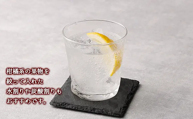柑橘系の果物を絞って入れた水割りや炭酸割りもおすすめです。
