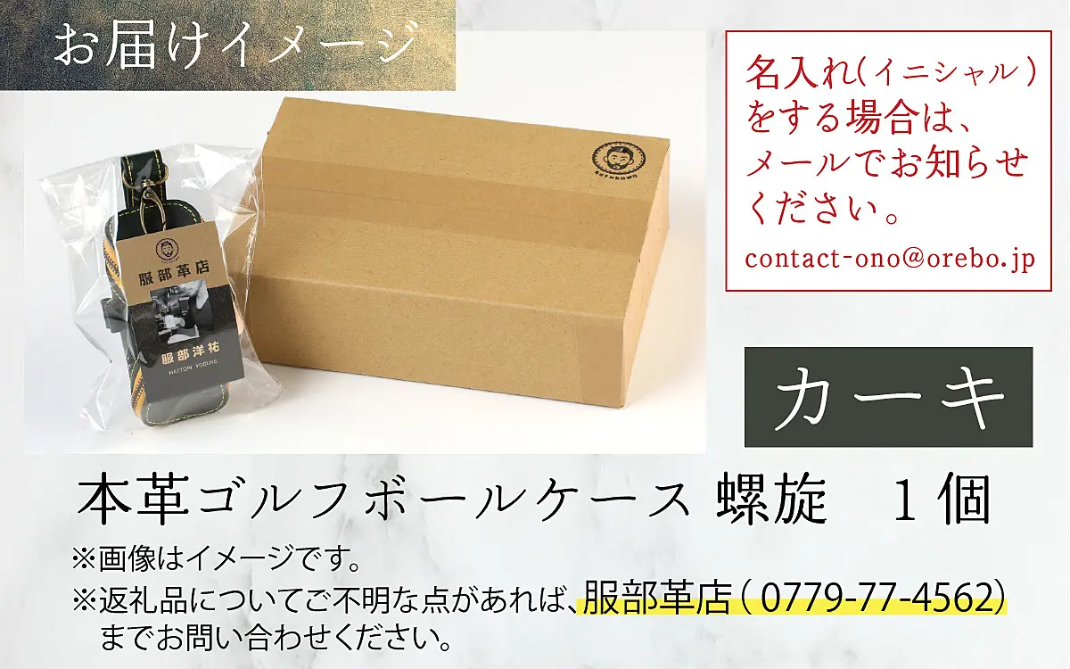 【6色から選べる】本革ゴルフボールケース 螺旋 カーキ【イニシャル名入れ対応】 [B-024003_01]