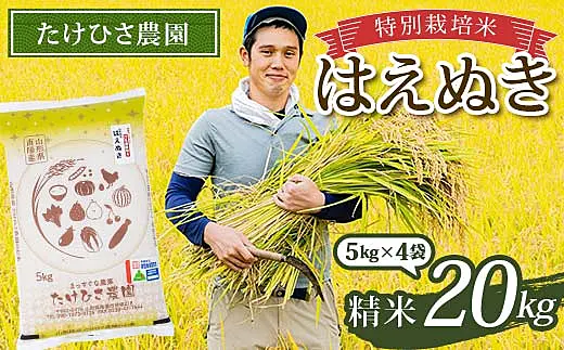 令和7年産 特別栽培米 はえぬき (精米) 20kg (5kg×4袋) 『たけひさ農園』 山形県 南陽市 [2374]
