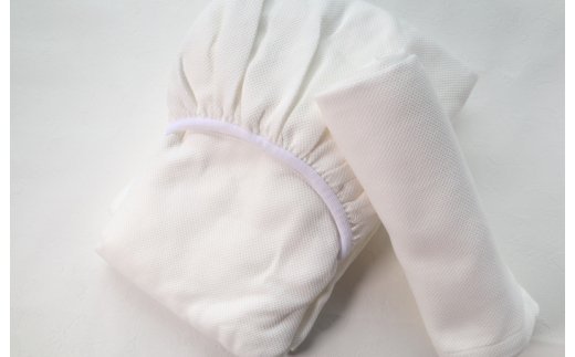 G1951 【tissu de coton/ハニカム織】泉州南部織 BED用シングルシーツ&ピロー(WH)