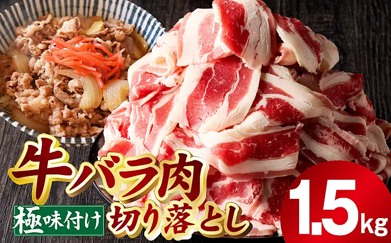 mrz0240 牛バラ肉 切り落とし 1.5kg【氷温熟成×極味付け 小分け 500g×3P 小分け 焼くだけ 簡単調理】