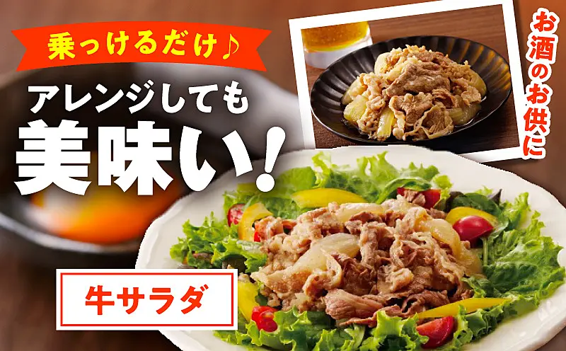 - 原材料:牛肉(アメリカ)・玉ねぎ(泉州)・醤油・酒・味醂・砂糖・鰹だし・蜂蜜・生姜(一部に牛肉・大豆・小麦を含む)
