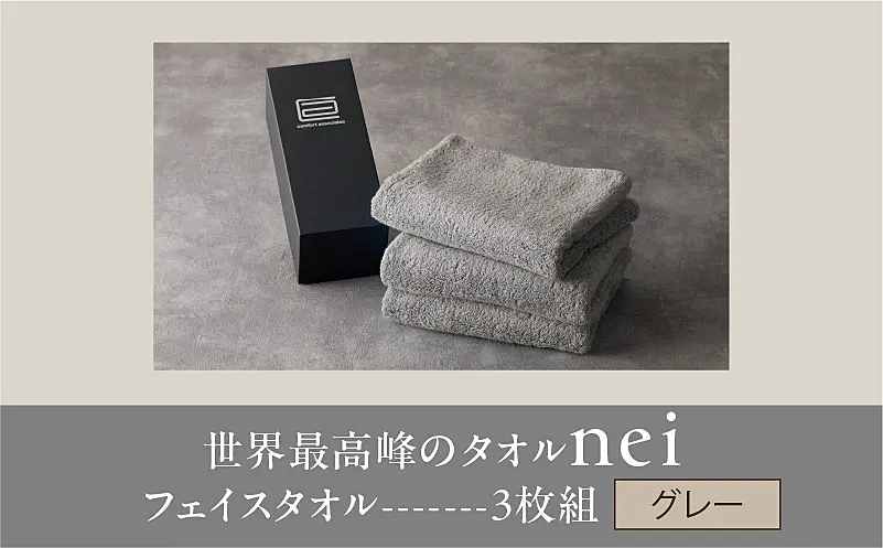 020C099 世界最高峰のタオル nei フェイスタオル 3枚(グレー)