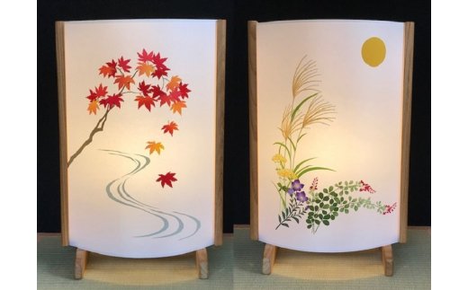 099H269 着物生地で作ったおしゃれな行灯(あんどん) 秋の植物