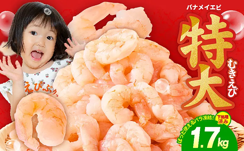 kgp0012 むきえび 総量1.7kg 特大5Lサイズ 下処理不要 小分け 850g×2 訳あり サイズ不揃い バナメイエビ