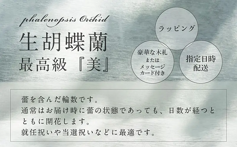 当社が生産する胡蝶蘭を、当社、発注先の障がい者就労支援施設B型または障がい者を雇用している企業等で、一つ一つ心を込めて仕立てます。