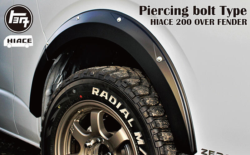 099H3061 【スピード発送】ハイエース オーバーフェンダー ピアスボルト風 マッドブラック オフロードカスタム
