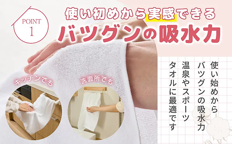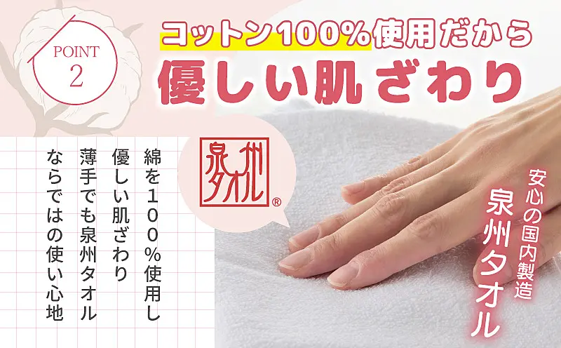 使い始めから抜群の吸水力と優しい肌ざわりは泉州タオルならでは。とにかくタオルがたくさん欲しい、という方にはおすすめです。
