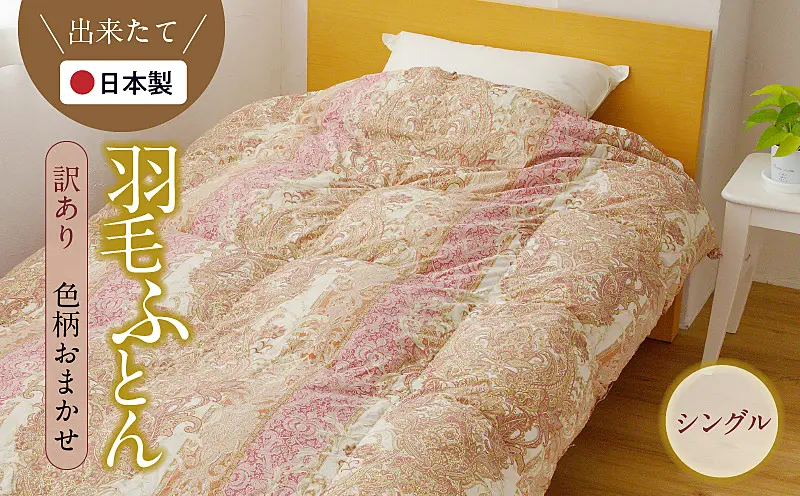 099H3093 国産 羽毛布団 1枚 シングル 150cm×210cm 訳あり 柄おまかせ